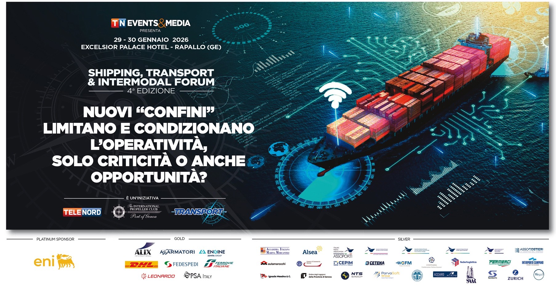 È in questo scenario che si inserisce la IV edizione dello “Shipping, Transport & Intermodal Forum”, promosso da Telenord – TN Events&Media in collaborazione con il Propeller Club Port of Genoa, che si terrà il 29 e 30 gennaio 2026 all’Hotel Excelsior Palace di Rapallo.