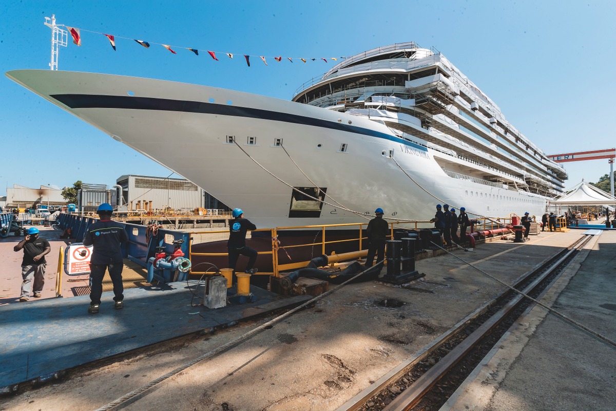 Alla cerimonia di varo, occasione che segna il passaggio alla fase finale di allestimento e rifinitura degli interni, hanno presenziato Gilberto Tobaldi, Direttore dello Stabilimento di Ancona, e Gastone Lazzari, New Building Site Team Manager Viking.