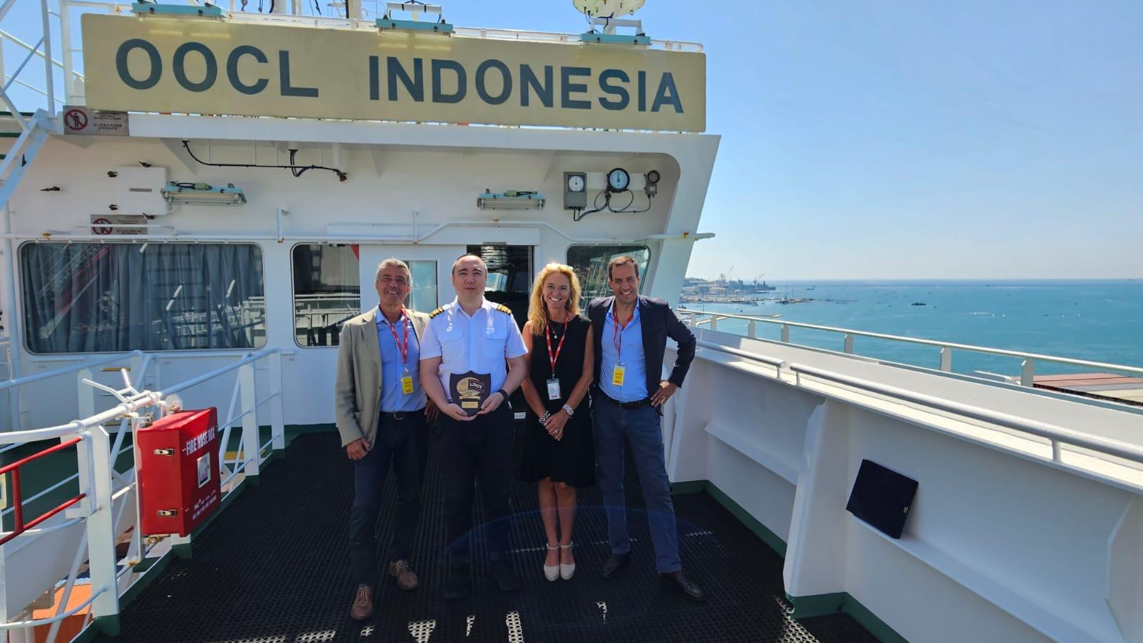 Ricevuti dal comandante Xiaosong Guo sono saliti a bordo Giorgia Bucchioni, amministratore delegato dell’Agenzia Marittima Lardon che opera la portacontainer, Alessandro Pellegri dirigente operativo e tecnico del terminal e Peter Robino senior kay account manager e bussiness di Contship Italia. Sono stati scambiati i tradizionali crest nel corso di una cerimonia di accoglienza particolarmente calorosa e significativa riservata al comandante e all’equipaggio della “Oocl Indonesia” che ha inaugurato il nuovo servizio di collegamento tra Asia e Mediterraneo Occidentale a ulteriore conferma della quasi ripresa dei traffici nel Porto della Spezia dall’inizio del 2024.