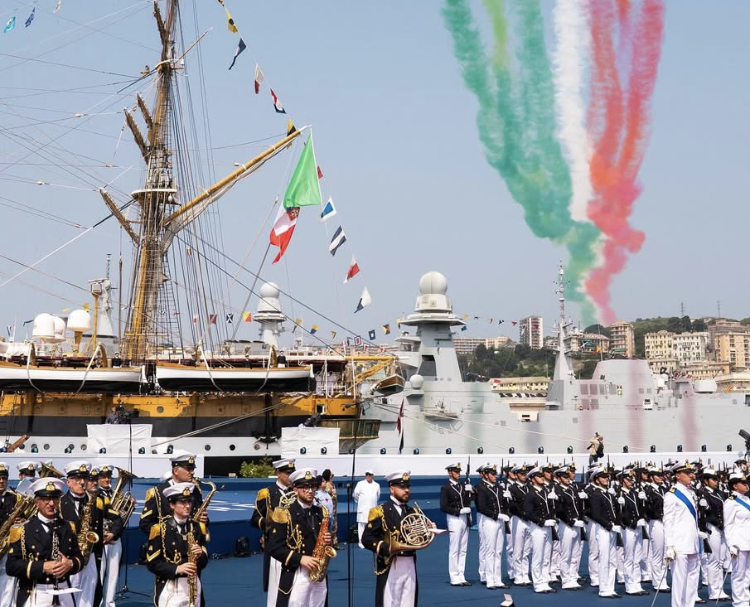 La cerimonia ufficiale si è tenuta alla presenza del Presidente della Repubblica Sergio Mattarella accolto dalla Sindaca di Genova Silvia Salis, del Ministro della Difesa Guido Crosetto e di altri esponenti del Governo, del Capo di Stato Maggiore della Difesa Generale Luciano Portolano e del Capo di Stato Maggiore della Marina Ammiraglio Enrico Credendino e il Presidente di Regione Liguria Marco Bucci.