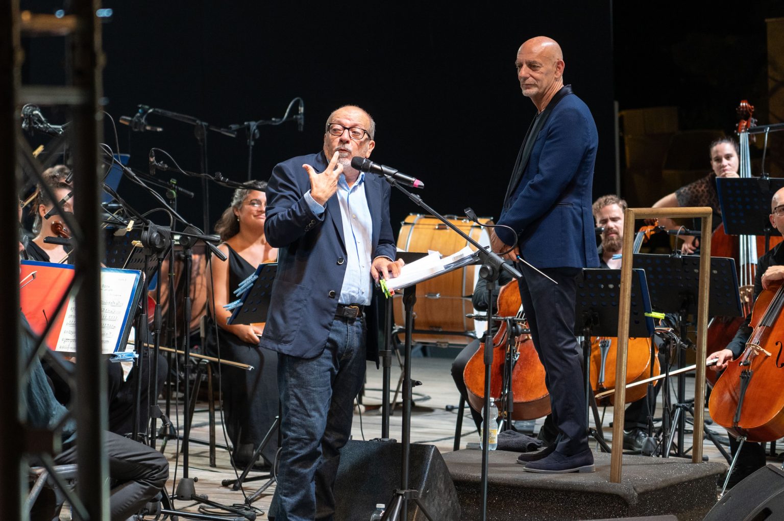 Dario Vergassola con il suo stile pungente e autoironico da “comico romantico-depresso-ansioso” dal grande acume. Dario Vergassola noto come comico, cantautore e scrittore ha allietato il pubblico di Sanremo con brillanti battute, raccontando poi la storielle sui lupi e intervallando le parti musicali di Prokf’ev suonate dall’Orchestra Sinfonica.