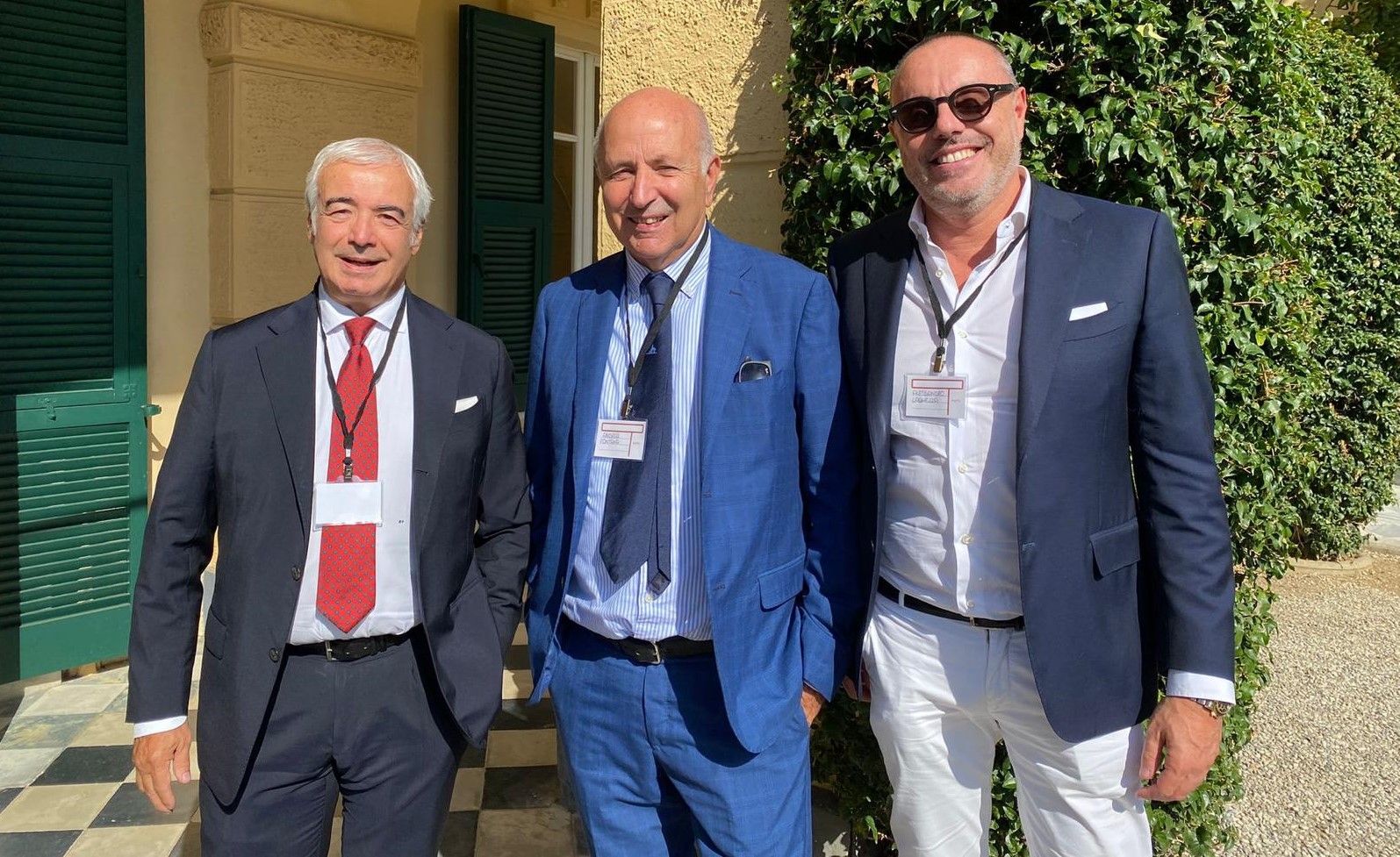 Nella foto Bruno Pisano (Commissario Autorità Portuale) e Alessandro Laghezza (Presidente Associazione Spedizionieri) con Andrea Fontana (ora Presidente degli Agenti Marittimi e che nei tre ani precedenti aveva ricoperto da spezzino la carica nazionale ora assegnata a Laghezza) in una foto d’archivio di una convention nazionale a Villa Marigola