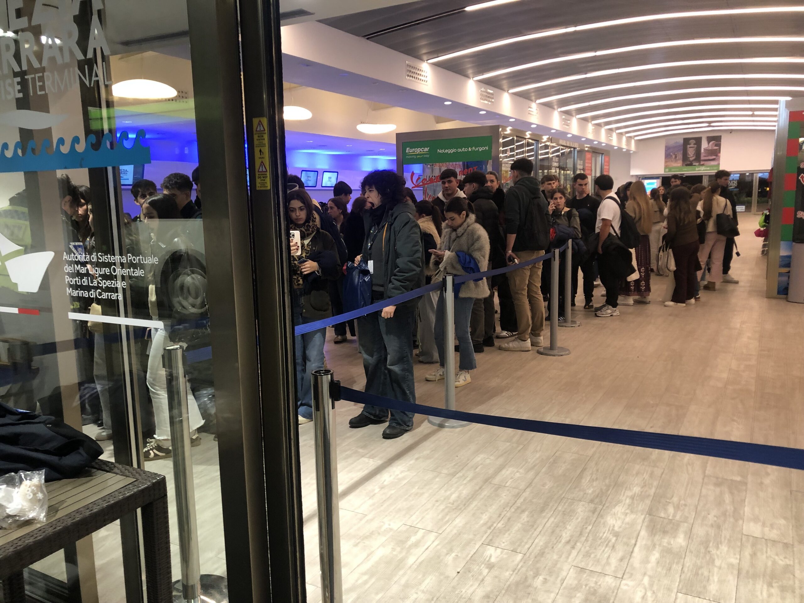 Nella foto studenti-crocieristi, sempre più numerosi, al terminal cruise del Porto della Spezia
