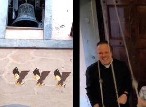 LA SPEZIA – E’ diventato virale il video del parroco delle chiese della comunità del centro città alla Spezia che suona le campane a festa per la vittoria di ieri