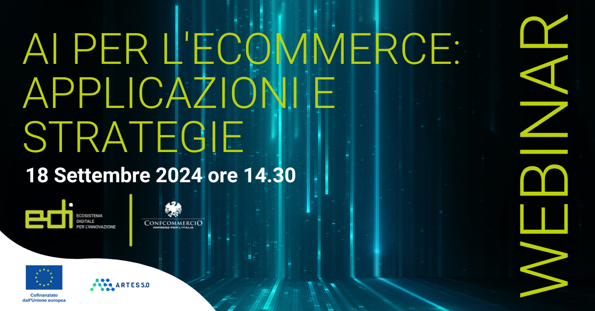 Edi Confcommercio, sportello digitale per l’innovazione delle imprese, organizza Mercoledì 18 settembre alle 14:30 un nuovo evento formativo dal titolo “AI per l’eCommerce: applicazioni e strategie”. con Pietro Bonomo, consulente marketing ed esperto di applicazioni AI.
