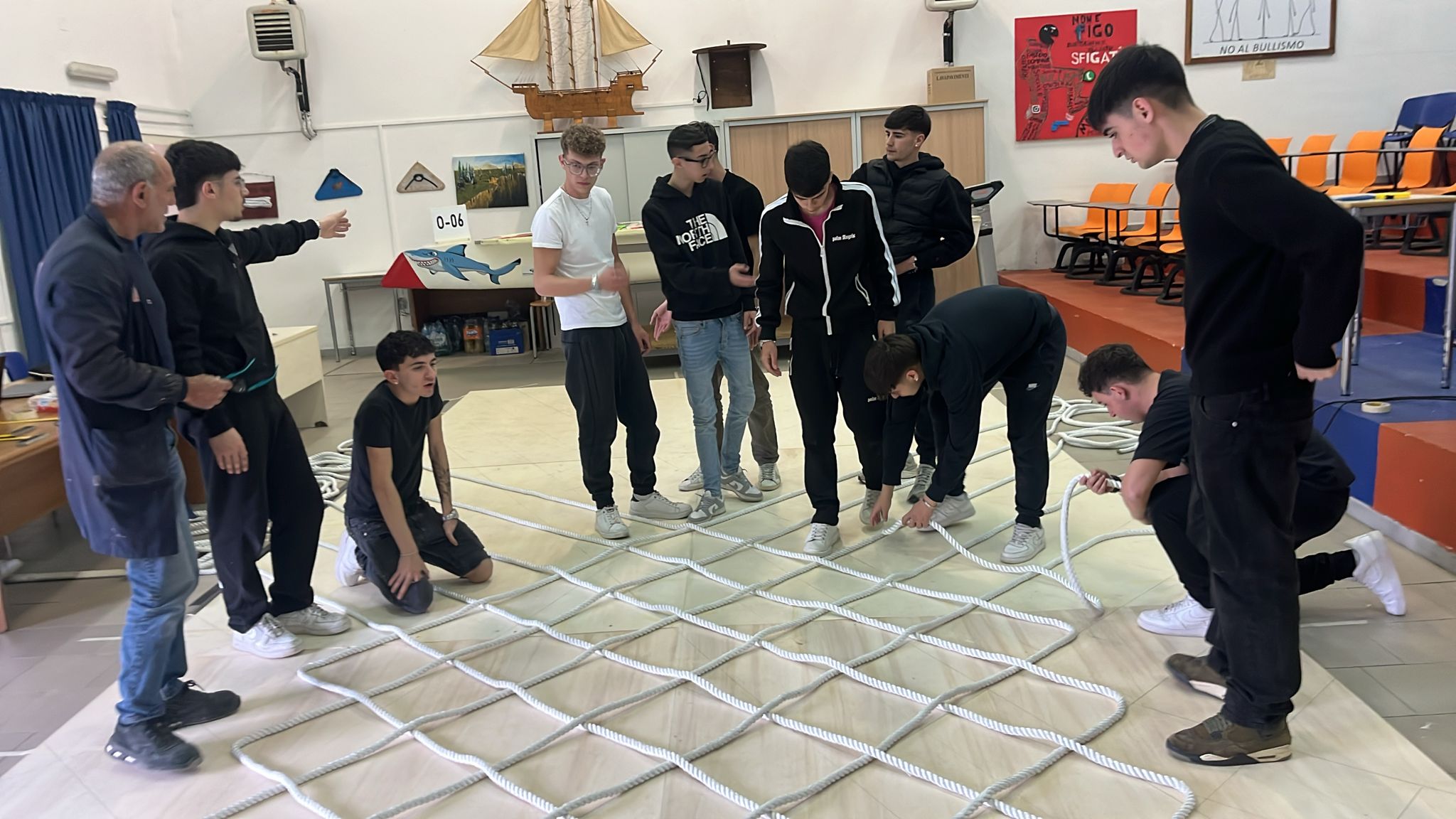 Dida: Gli studenti dell’ IIS Amsicora – Indirizzo Made in Italy settore Nautico di Olbia a lezione di arte marinaresca con il nostromo Tilocca.