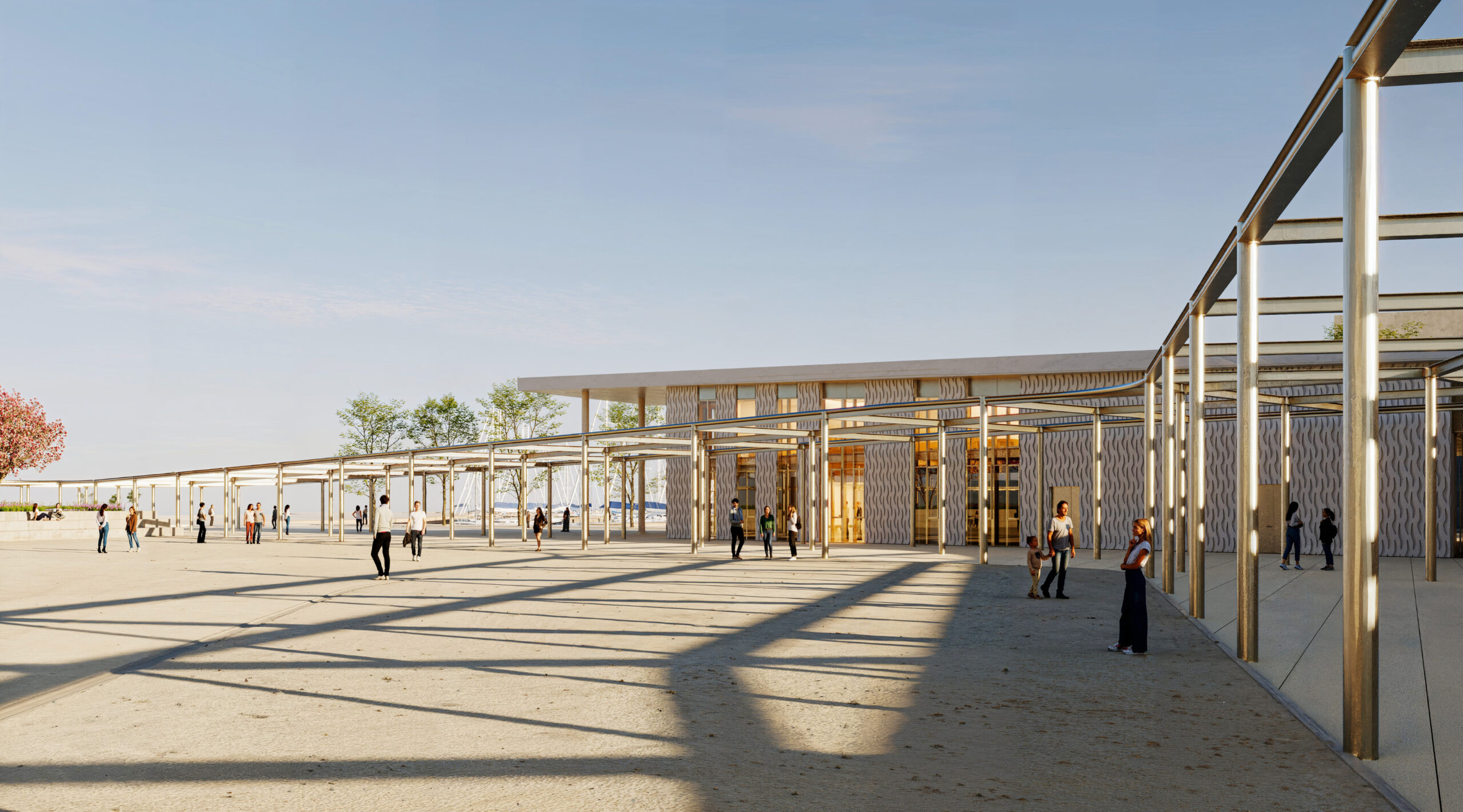 Dal punto di vista architettonico, l’edificio si svilupperà come un volume unitario con due fronti principali: uno rivolto verso la città e la marina, con funzione rappresentativa, e l’altro aperto verso il mare e un’arena destinata a eventi all’aperto.