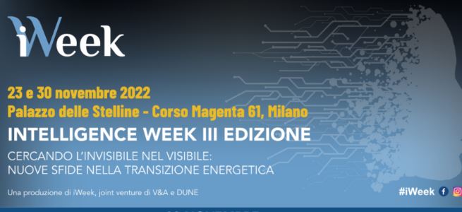 Milano – Torna, in presenza, l’Intelligence Week, organizzata da iWeek, joint venture di V&A – Vento & Associati e Dune, con il supporto della Associazione Culturale Corte Sconta, di Strategic Risk Consulting, e in partnership con Esso Italiana, FNM, Deloitte Legal, BrianzAcque, ITA-ICE, Partecipazioni, e Fondazione Stelline.