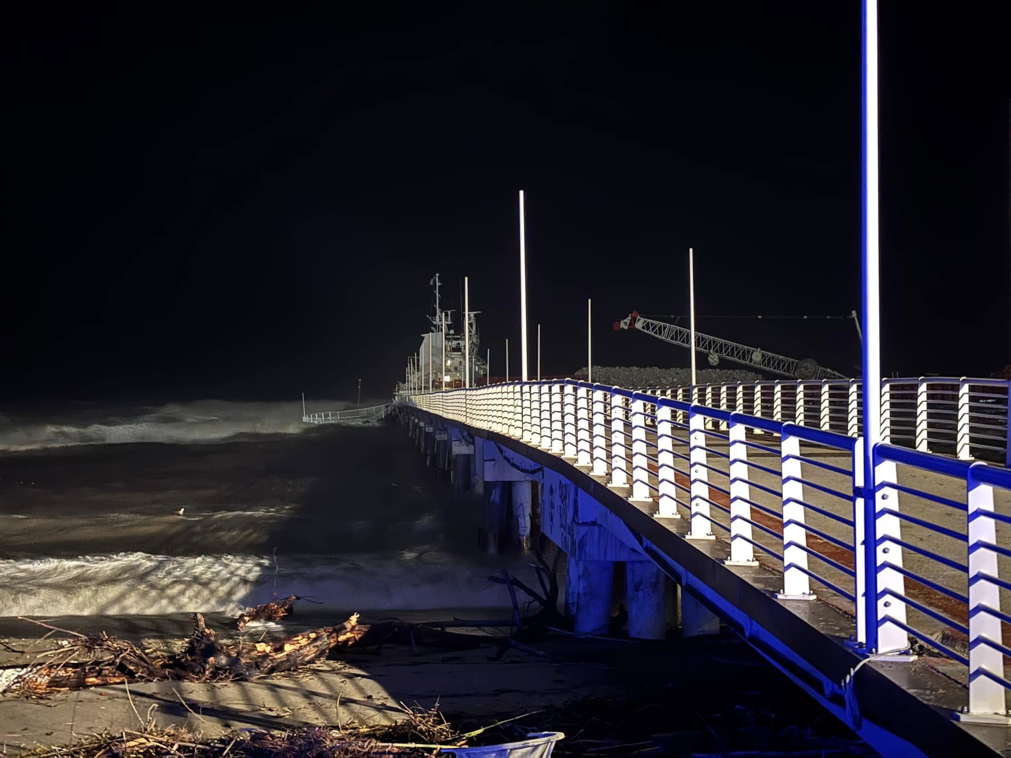 A preoccupare è ora la stabilità del pontile in quanto la nave  continua a sbattere contro la struttura, spinta dal mare ancora mosso, dopo che, per l’impatto, è crollata una parte della rotonda.
