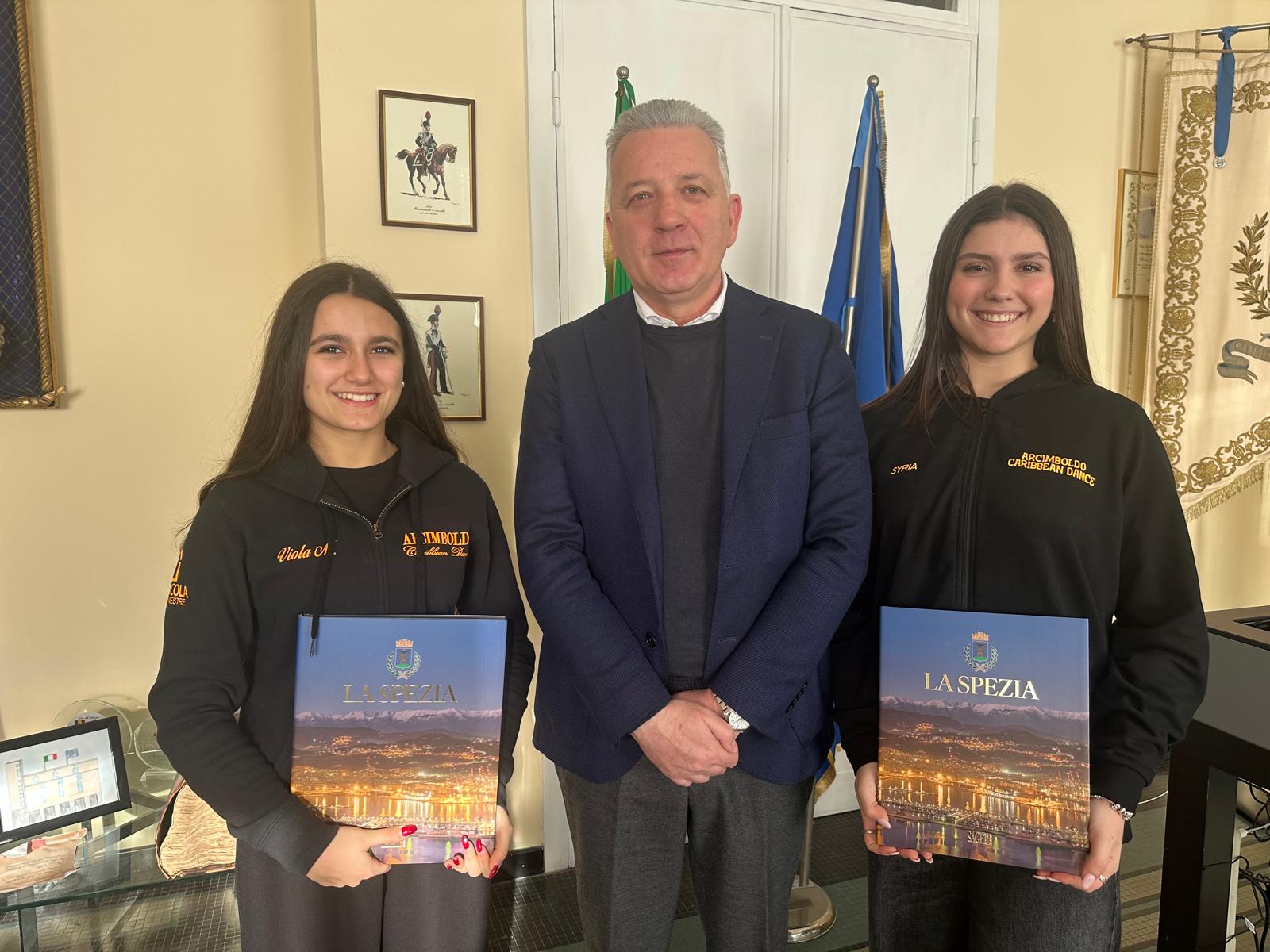 LA SPEZIA – Il Sindaco della Spezia Pierluigi Peracchini ha incontrato le ballerine Viola Mandrini e Syria Toma, atlete dell’ASD Arcimboldo Caribbean Dance, reduci da straordinari successi internazionali.