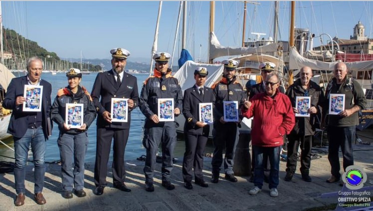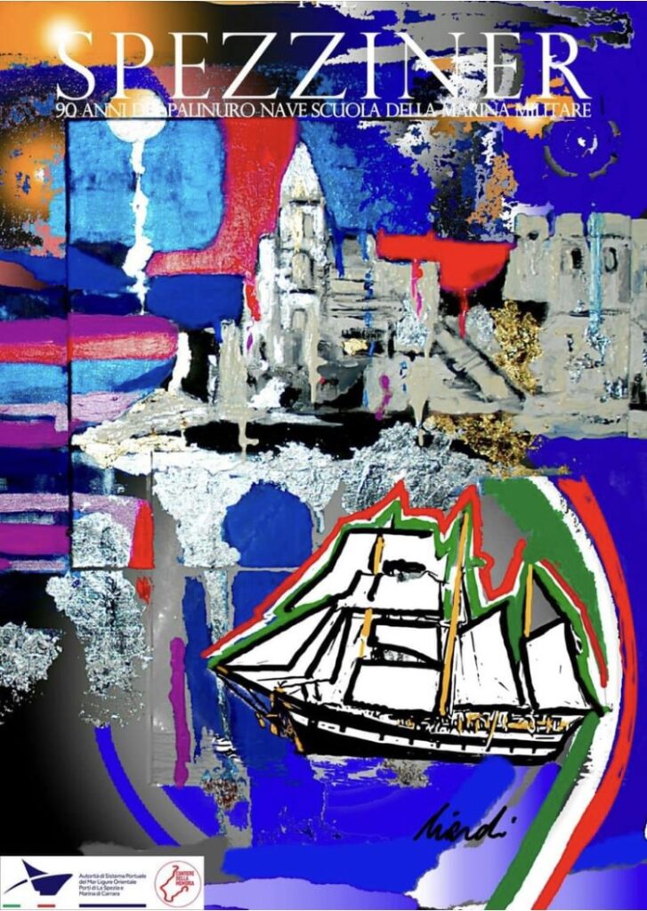 Le foto di Giuseppe Rudisi sono quelle dell’inaugurazione della mostra seguita alle visite a bordo del Palinuro dei ragazzi del Nautico e del Cisita, compreso il dono agli studenti e all’equipaggio della copertina di The Spezziner realizzata da Andrea Ciardi per festeggiare il Palinuro, copertina che è stata stampata dalla Autorità di sistema portuale del Mar Ligure Orientale.