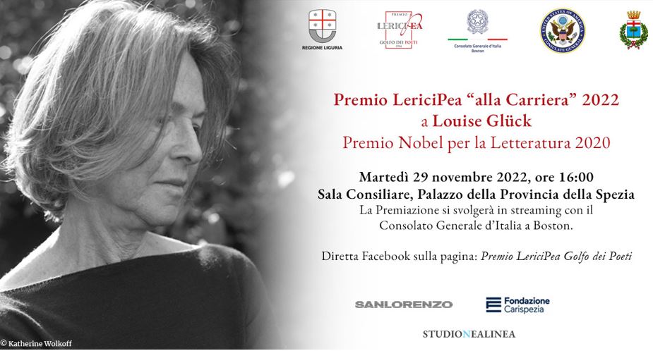 A seguire l’intervento e il dialogo con la Premiata a cura del Prof Massimo Bacigalupo, emerito di letteratura americana all’Università di Genova, membro della Giuria del Premio e traduttore di Louise Glück. A coordinare l’evento, Lucilla Del Santo, project manager del Premio LericiPea Golfo dei Poeti.
