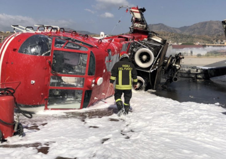 E’ accaduto all’aeroporto di Reggio Calabria poco prima dell’atterraggio. L’elicottero, un Sikorsky S64, tornava, come detto, da un’operazione antincendio boschivo.