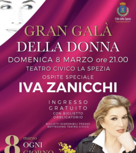 “La serata dell’8 marzo al Teatro Civico, impreziosita dalla presenza di Iva Zanicchi, rappresenterà un’importante occasione per unire musica e riflessione e per ribadire con convinzione l’impegno dell’Amministrazione nella promozione della parità di genere, nella valorizzazione della figura femminile e nel contrasto a ogni forma di violenza – dichiara il Sindaco della Spezia Pierluigi Peracchini – La Giornata Internazionale della Donna non è soltanto una ricorrenza simbolica, ma un momento di consapevolezza collettiva che ci richiama alla responsabilità quotidiana di costruire opportunità concrete, di sostenere il talento e il merito delle donne, di favorire una piena partecipazione alla vita sociale, culturale ed economica della nostra comunità. Invito tutta la cittadinanza a partecipare a questo appuntamento che sarà un momento di condivisione e dialogo capace di unire generazioni diverse.”