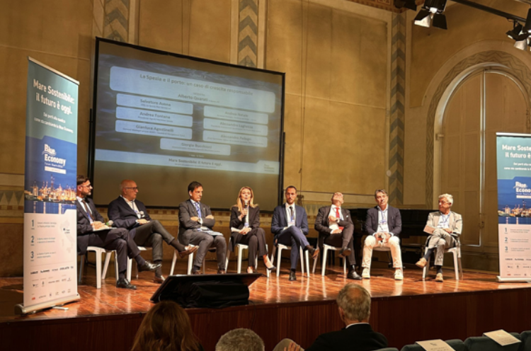 Terzo e conclusivo panel dedicato a “La Spezia e il porto: un caso di crescita responsabile”, che moderato da Alberto Quarati, Il Secolo XIX, ha visto gli interventi di Salvatore Avena, CEO, La Spezia Port Service, Andrea Natale, Terminal Manager, Terminal del Golfo-Tarros, Andrea Fontana, Presidente Agenti Marittimi Spezia, Alessandro Larghezza, Presidente Associazione Spedizionieri della Spezia, Gianluca Agostinelli, General Manager presso SCAFI-Società di Navigazione e Alessandro Pellegri, Chief Operating Officer di La Spezia Container Terminal e Giorgia Bucchioni, Amministratore Delegato Agenzia Marittima Lardon.