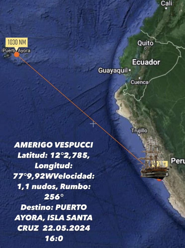 La nave scuola della Marina Militare Italiana era arrivata, anche qui per la prima volta nella sua storia, alle Galapagos dopo essere salpata dalla Base Navale di Callao della Marina di Guerra del Perù.