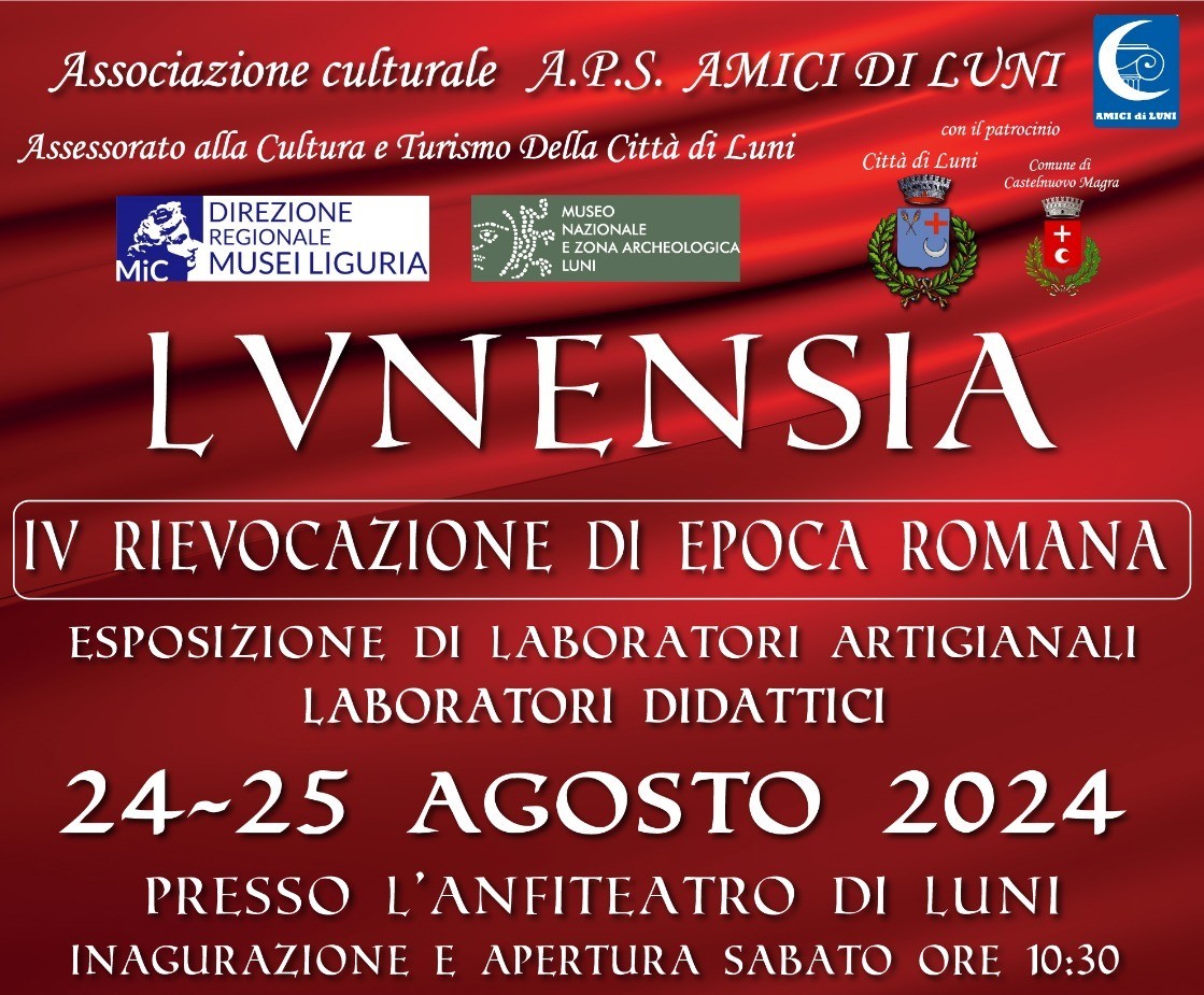 LUNI – CASTELNUOVO MAGRA – Il 24 e 25 agosto, nella zona antistante l’anfiteatro di Luni, si svolgerà LVNENSIA, la quarta (IV) rievocazione storica di epoca romana.