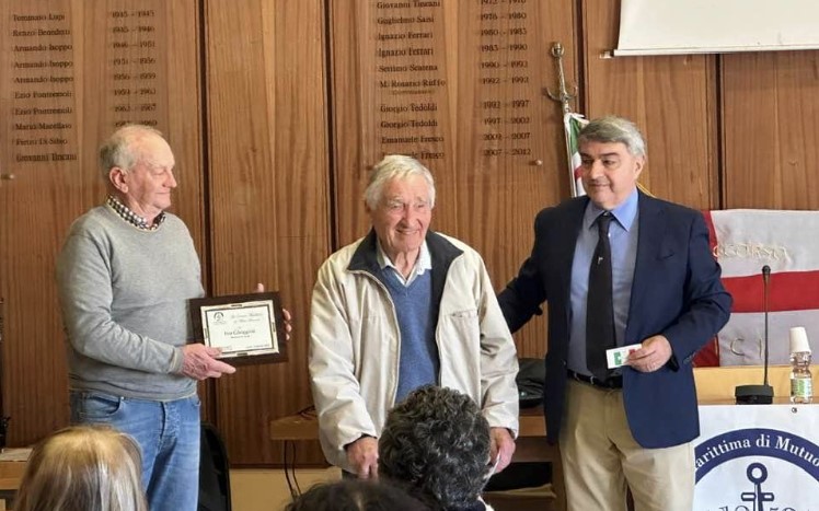 LERICI – E’ stata salutata come una bella giornata non solo per Lerici ma per tutto il Golfo della Spezia quella che ha visto la consegna del riconoscimento della Società Marittima di Mutuo Soccorso 1852 a Ivo Ghiggini maestro d’ascia lericino.