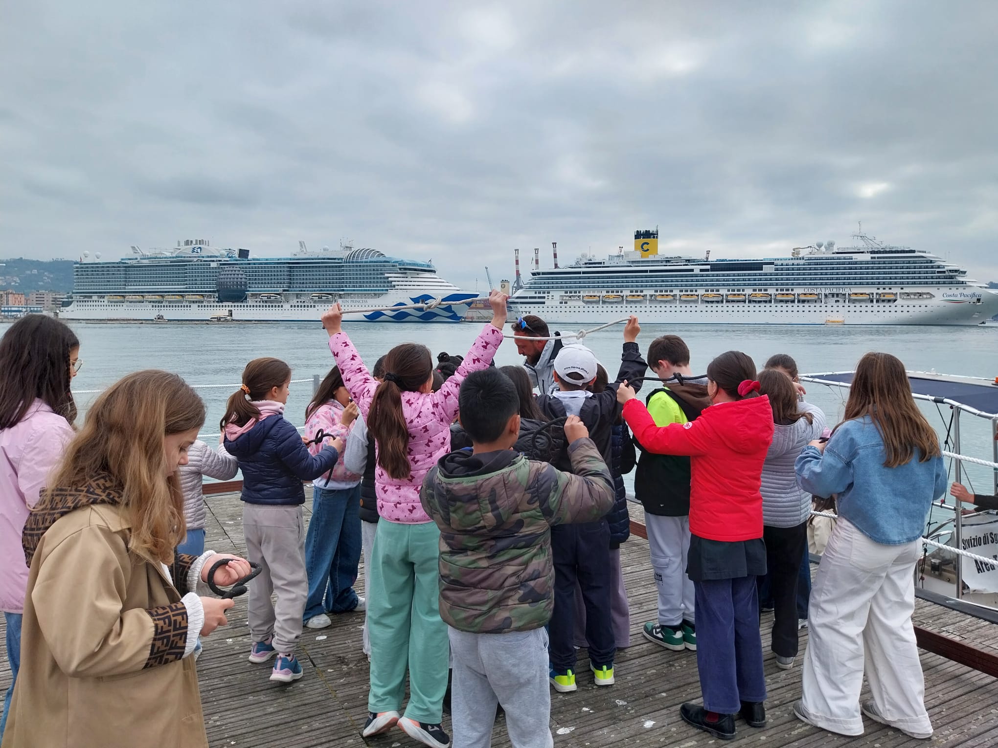 Giacomo Auguiari, presidente del gruppo nautica dell’associazione e titolare dell’attività “Aphrodite”, e Mirko Rollandi, titolare dell’attività “Ice cream boat”, hanno accompagnato oltre 70 studenti dell’Istituto Comprensivo di primo grado ISA 4 alla scoperta del mondo marino e del mestiere che svolgono quotidianamente. Giacomo e Mirko hanno raccontato la propria esperienza e condiviso curiosità e competenze legate al settore nautico.