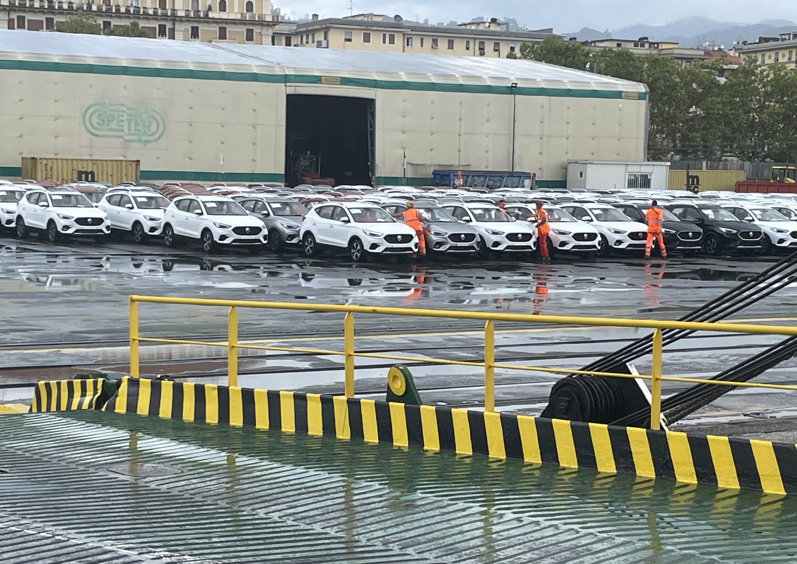 Le auto, come già più volte spiegato, arrivano in container, sono “trattate” una ad una dal personale della Eagle Service, “Servizio dell’Aquila”, società nata nel 2017 e guidata da Leonardo Romeo, e quindi sistemate nell’ampio piazzale di Calata Paita.
