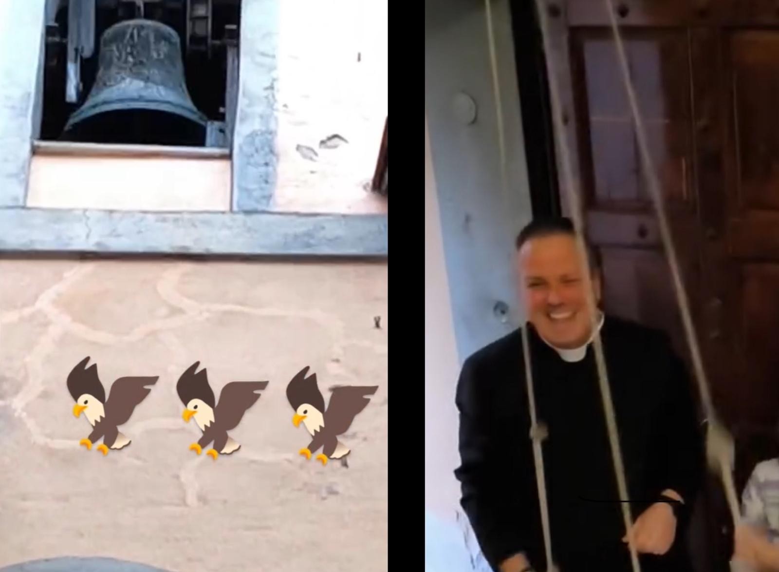 LA SPEZIA – E’ diventato virale il video del parroco delle chiese della comunità del centro città alla Spezia che suona le campane a festa per la vittoria di ieri dello Spezia sul Pisa all’Alberto Picco.